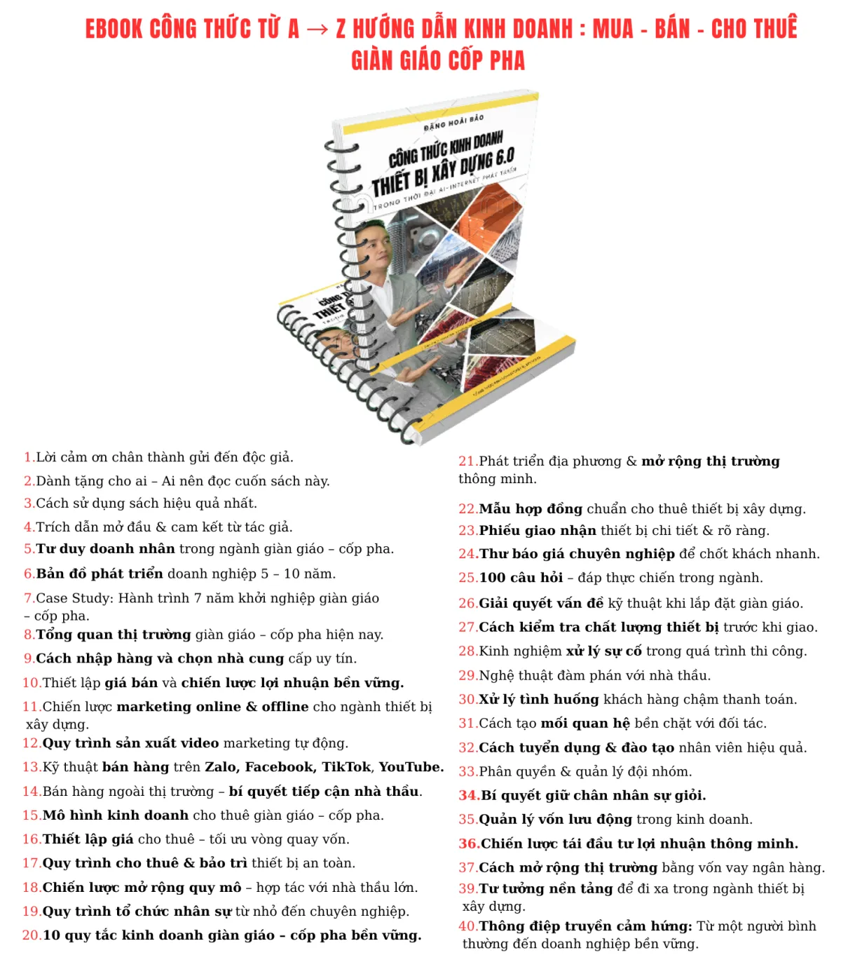 ĐỌC THẬT KỸ, CHI TIẾT MỤC LỤC VỀ EBOOK CÔNG THỨC HƯỚNG DẪN MUA BÁN CHO THUÊ GIÀN GIÁO CỐP PHA NÀY NHÉ: